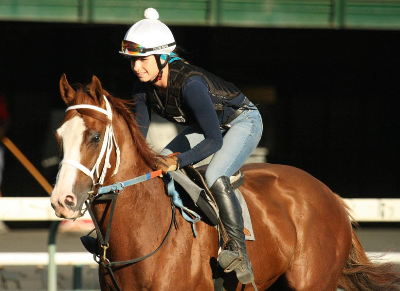 Controlling a 1200lb animal can be challenging exercise riders find a way to become a team and work with the horse to get ideal results. Working with the horse requires strength, which is developed every ride.ย I work with various trainers and I exercise up to 10 racehorses each morning, 6 days per week. The Thoroughbreds are anywhere between 2 and 7 years old. My mornings start early, as the track is open from 6am-10am. Once a trainer likes the way you fit into his horses program you generally keep the ride on that horse. I think my reputation at the track would be that I am assertive with my horse, but very giving, and allowing him to learn his strengths without getting in the way of him/herself. I am also very light but strong, so I am easy on the horses backs. Itโs been exciting to watch my horses progress and I have even been fortunate to have a few in the winner's circle! Galloping a racehorse is by far the best part about being an exercise rider. Nothing beats the early morning sunrises, the steady beat of a powerful Thoroughbred, and the feeling of being one with your horse.